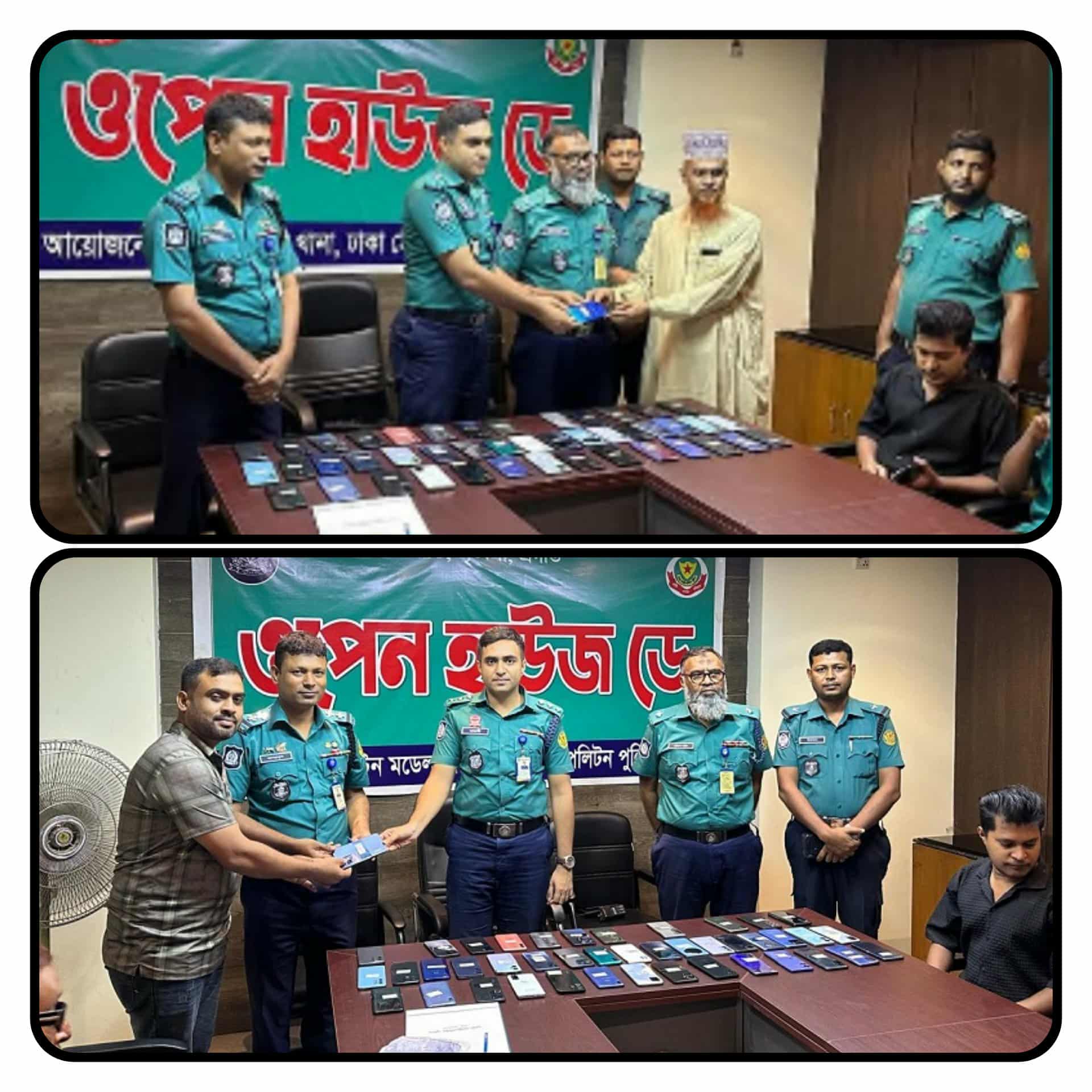 রাজধানীতে বিভিন্ন সময়ে হারিয়ে যাওয়া ৪৬টি মোবাইল ফোনসেট উদ্ধার করে প্রকৃত মালিকদের বুঝিয়ে দিয়েছে পল্টন মডেল থানা পুলিশ