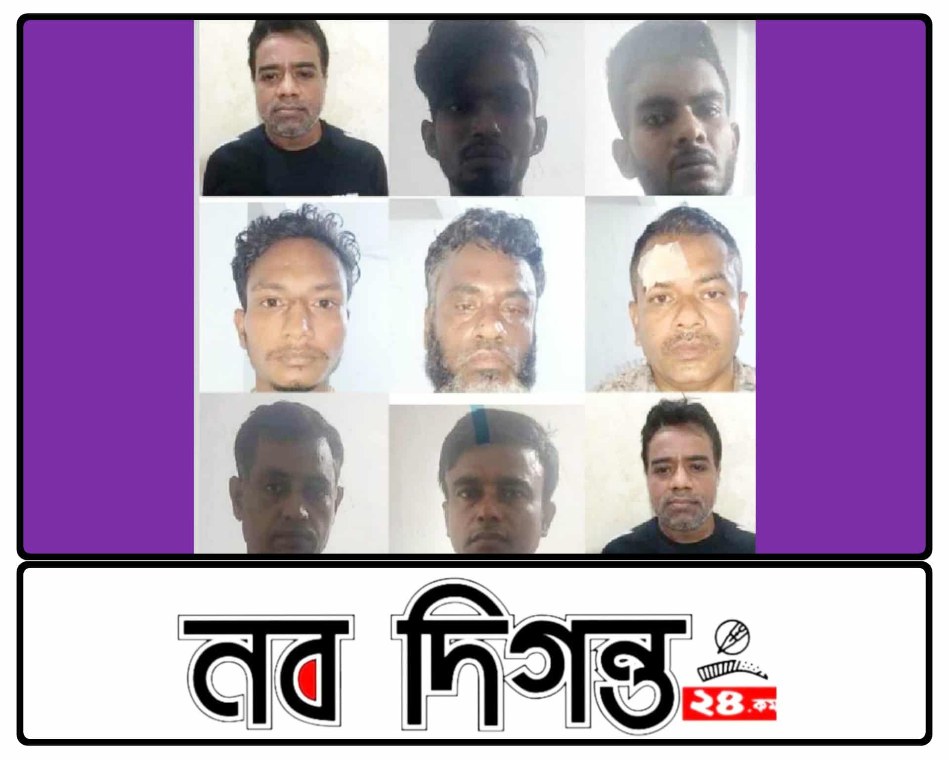 গ্রেফতারকৃতরা হলো- ১। মোঃ কামাল হোসেন (৪৪) ২। মোঃ নুরে আলম (৪৫) ৩। মোঃ ওসমান (৩৯) ৪। মোঃ আব্দুর রহমান (৫৬) ৫। মোঃ বিল্লাল গড়ামী (৩০) ৬। মোঃ রনি (২৫) ৭। মোঃ শুভ ইসলাম কাউছার (২৪) ৮। বাপ্পী শিকদার (৩৫) ও ৯। মনিরুজ্জামান বাপ্পী ওরফে বাপ্পী শিকদার (৩২)।