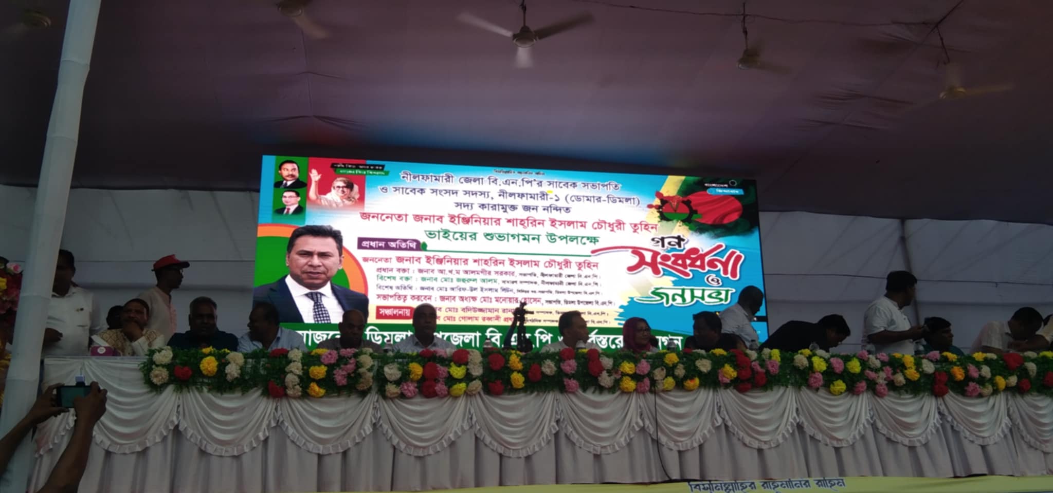 বিএনপি চেয়ারপারসন বেগম খালেদা জিয়ার ভাগ্নে, নীলফামারী জেলা বিএনপির সাবেক সভাপতি এবং নীলফামারী-১ আসনের সাবেক সংসদ সদস্য ইঞ্জিনিয়ার শাহরিন ইসলাম চৌধুরী তুহিনের আগৃমন উপলক্ষে গণসংবর্ধনা অনুষ্ঠানের আয়োজন করা হয়েছে।