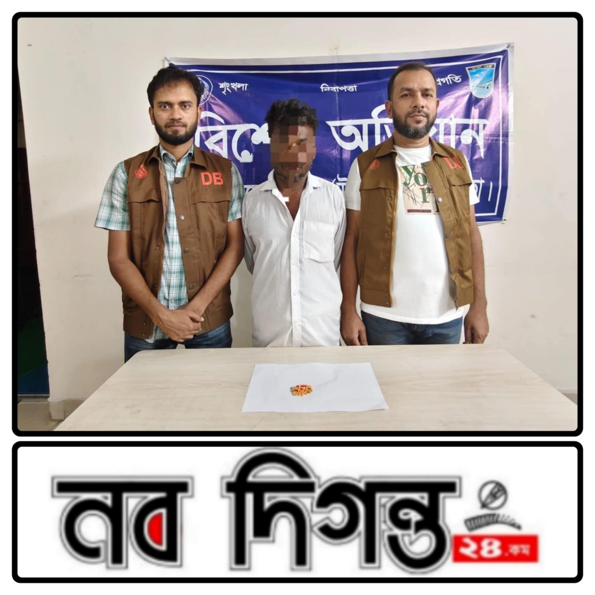 ঢাকা জেলা পুলিশের অভিভাবক সুযোগ্য পুলিশ সুপার জনাব মোঃ আনিসুজ্জামান পিপিএম মহোদয়ের নির্দেশনায় বিশেষ অভিযান পরিচালনাকালে ঢাকা জেলার ডিবি (উত্তর) এর একটি চৌকস টিম ০৬/০৮/২৫ খ্রিস্টাব্দ ১৬.৩০ ঘটিকার সময় সাভার মডেল থানাধীন সাভার বক্তারপুর বেদেপল্লী এলাকা হইতে আসামী ১। মোঃ শাহীনুর বাজিকর (৪০), পিতা-মৃত মজনু বাজিকর, সাং-বক্তারপুর বেদে পল্লী, থানা-সাভার মডেল, জেলা-ঢাকাকে ৫০ (পঁঞ্চাশ) পিস ইয়াবা ট্যাবলেটসহ গ্রেফতার করেন। উক্ত আসামীর বিরুদ্ধে সাভার মডেল থানায় নিয়মিত মামলা রুজু পূর্বক আইনানুগ ব্যবস্থা প্রক্রিয়াধীন।