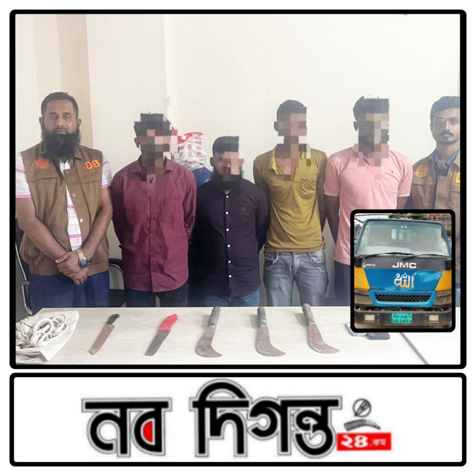 ঢাকা জেলা পুলিশের অভিভাবক সুযোগ্য পুলিশ সুপার জনাব মোঃ আনিসুজ্জামান (পিপিএম) মহোদয়ের নির্দেশনায় অফিসার ইনচার্জ, ডিবি (দক্ষিন), ঢাকা জেলা এর নেতৃত্বে ঢাকা জেলা ডিবি (দক্ষিন) এর চৌকস টিম গোপন সংবাদের ভিত্তিতে ০৬/০৮/২০২৫ খ্রিস্টাব্দ দিবাগত রাতে ঢাকা জেলার দক্ষিণ কেরাণীগঞ্জ থানাধীন শুভাঢ্যা এলাকা হতে ডাকাতির প্রস্তুতিকালে ০১। মোঃ জামাল উদ্দিন (৩৯), পিতা-আঃ মান্নান, সাং-মহেষখালী, থানা-লালমোহন, জেলা-ভোলা, বর্তমান সাং-রুহিতপুর, থানা-কেরাণীগঞ্জ মডেল, জেলা-ঢাকা, ০২। মোঃ সাইফুল ইসলাম (২৮), পিতা-মোঃ আঃ জলিল, সাং-গজারিয়া, থানা-লালমোহন, জেলা-ভোলা, বর্তমান সাং-রুহিতপুর আনারপুর, থানা- কেরাণীগঞ্জ মডেল, জেলা-ঢাকা, ০৩। মোঃ আক্তার হোসেন (২৮), পিতা-আমজাদ হোসেন, থানা-রাণীশংকৈল, জেলা-ঠাকুরগাঁও, বর্তমান সাং-রুহিতপুর, থানা-কেরাণীগঞ্জ মডেল, জেলা-ঢাকা, ০৪। সোহাগ (২৪), পিতা-আঃ মান্নান, সাং-মহেষখালী, থানা-লালমোহন, জেলা-ভোলা, বর্তমান সাং-সাইনবোর্ড, থানা-সিদ্ধিরগঞ্জ, জেলা-নারায়নগঞ্জদেরকে গ্রেফতার করেন। গ্রেফতারকালে আসামীদের নিকট থেকে (ক) ০১ টি পিকআপ গাড়ী, যাহার রেজিঃ নম্বর ঢাকা মেট্রো-ন-১৩-১৬২২, (খ) ০৩ টি ধারালো দা, (গ) ০২টি ছুরি, (ঘ) ০৩ টি চায়না রশি, (ঙ) ০১টি টর্চ লাইট, (চ) ০২টি মোবাইল ফোন উদ্ধার করেন। ধৃত আসামীদের বিরুদ্ধে দক্ষিণ কেরাণীগঞ্জ থানার মামলা নং-২১, তাং-০৭/০৮/২০২৫ ইং, ধারা-৩৯৯/৪০২ পেনাল কোড রুজু পূর্বক আইনানুগ ব্যবস্থা প্রক্রিয়াধীন । উল্লেখ্য যে, সিডিএমএস পর্যালোচনায় দেখা যায় ধৃত আসামী মোঃ জামাল উদ্দিন (৩৯) এর বিরুদ্ধে ভোলা জেলার লালমোহন থানা সহ ঢাকা জেলার কেরানীগঞ্জ মডেল থানা ও ঢাকা জেলার দক্ষিণ কেরানীগঞ্জ থানায় ০২টি চুরি ও ০১ টি ডাকাতি মামলা সহ মোট ০৩ টি মামলা রয়েছে।