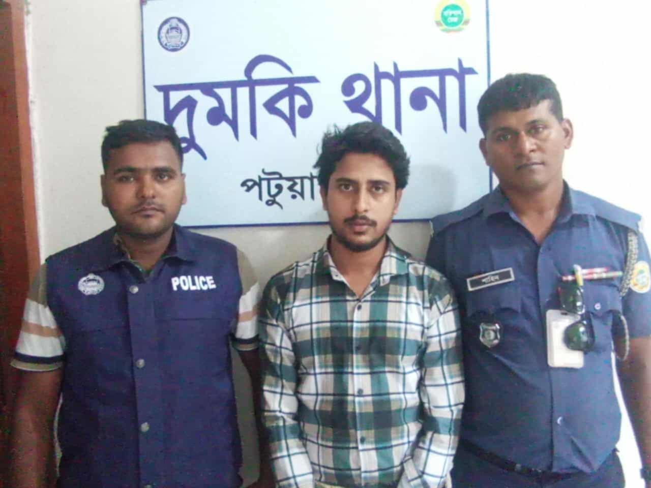 গ্রেপ্তারকৃত নাঈম হোসেন খাঁন দুমকি উপজেলার শ্রীরামপুর ইউনিয়নের ৩নং ওয়ার্ডের আঃ রহমান খানের ছেলে।