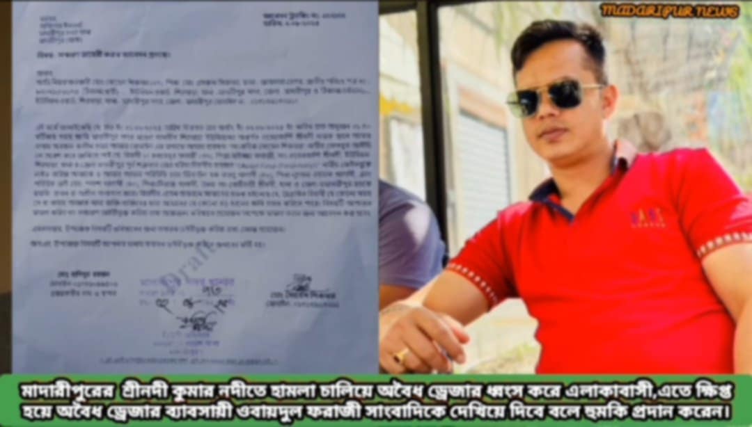 ঘটনার পর সামাজিক যোগাযোগমাধ্যম ফেসবুকে লাইভে এসে ড্রেজার মালিক পরিচয় দেওয়া ওবায়দুল ফরাজী স্থানীয় সাংবাদিকদের উদ্দেশে প্রকাশ্যে হুমকি দেন বলে অভিযোগ উঠেছে। বিষয়টি নিয়ে এলাকাজুড়ে চরম উত্তেজনা বিরাজ করছে।