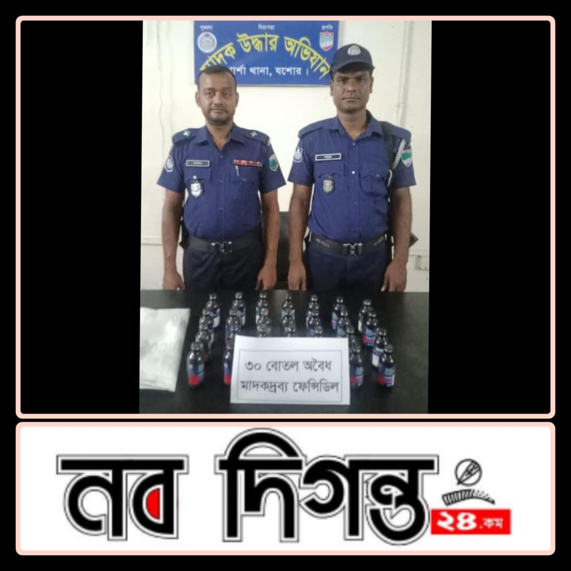 এসময় রাস্তার উপরে ফেলে রাখা অবস্থায় ৩০(ত্রিশ) বোতল অবৈধ মাদকদ্রব্য ফেনসিডিল উদ্ধার পূর্বক জব্দ করা হয়।
