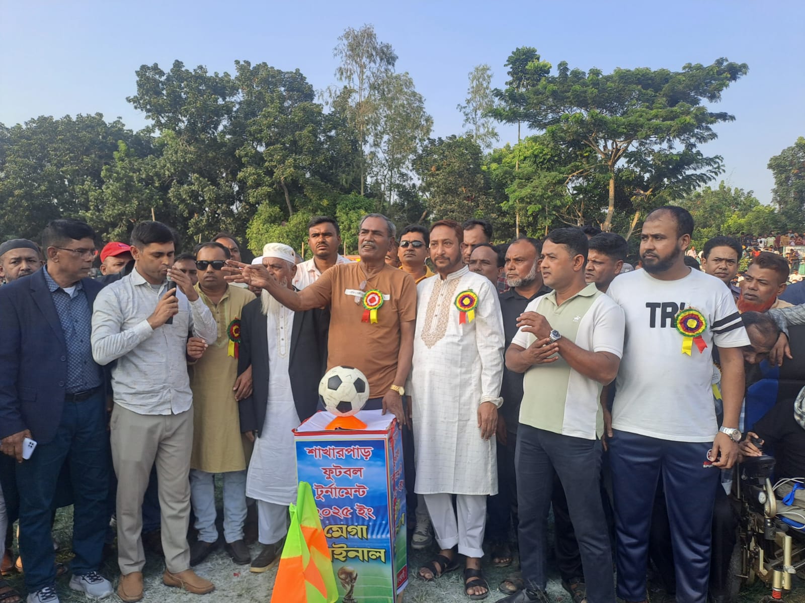 মাদারীপুরের রাজৈর উপজেলার শাখারপাড় মাঠে যুবক ও প্রবাসীদের আয়োজনে ব্যাকপ উৎসাহ, উদ্দীপনা ও হাজার হাজার ফুটবল প্রেমিদের পদচারণা মুখরিত হয়ে শেষ হয়েছে মেগা ফাইনাল খেলা। (২১ নভেম্বর শনিবার) বিকেলে ফাইনাল খেলা দেখতে সকল বয়সের মানুষেররা কেউ উঠেছে গাছে, কেউ বাড়ির ছাদে, কেউ বা আবার পায়ের নিচে ইট দিয়ে দেখছে খেলা। গোলে হলেই বিকট চিতকারে আলোড়িত হয় পুরো এলাকা। ফাইনাল খেলায় গোপালগঞ্জ জেলার ভাজন্দী শিকদার ফুটবল একাডেমি ও মাদারীপুরের উত্তর কুচিয়ামোড়া স্পোর্টিং ক্লাব অংশ গ্রহন করে। খেলার প্রথমার্ধে দুটি গোল দিয়ে এগিয়ে থাকে ভাজন্দী একাডেমি দ্বিতীয়ার্ধে এক গোল পরিশোধ করতে পারলেও নব্বই মিনিট পার হলেও দর্শকরা মাঠে মধ্যে ঢুকে ঢাক ঢোল পিটিয়ে আনন্দ করতে থাকে।