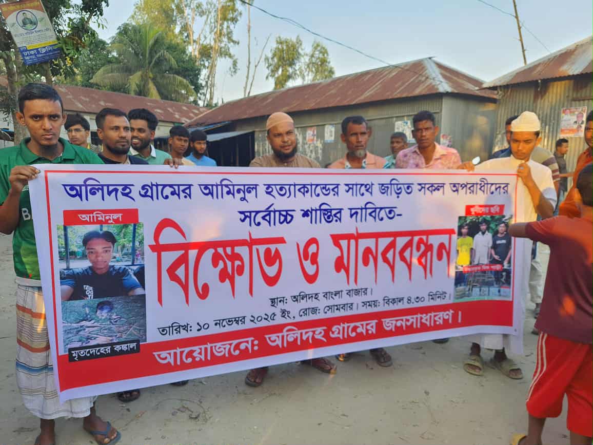 সলঙ্গায় আমিনুলের খুনিদের শাস্তির দাবিতে মানববন্ধন