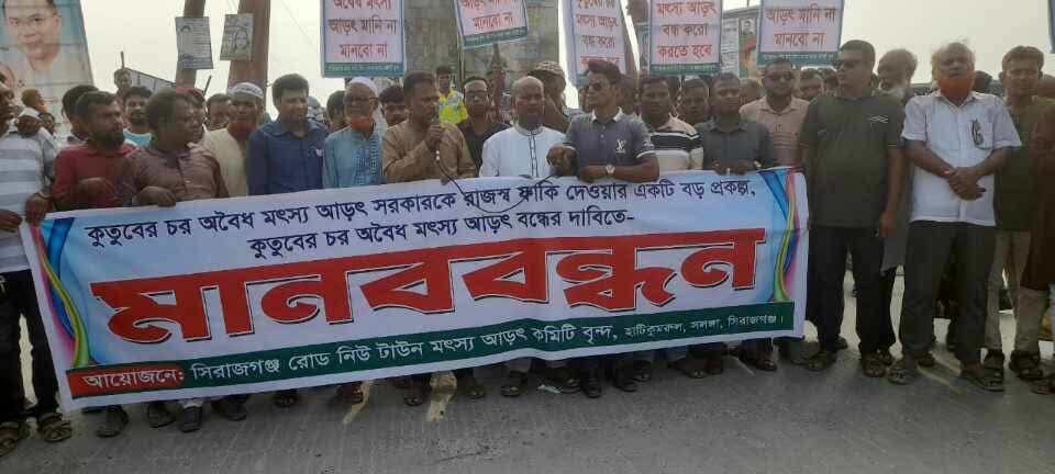 এ সময় মানববন্ধনে সিরাজগঞ্জ রোড ( হাটিকুমরুল রোড) নিউ টাউন মৎস্য আড়ৎ কমিটির পক্ষে বক্তব্য রাখেন,আব্দুল মজিদ খান,আমিনুল ইসলাম,মেহেদী হাসান ডিউক, শামীম হাসান, রনজু আহমেদ প্রমুখ।