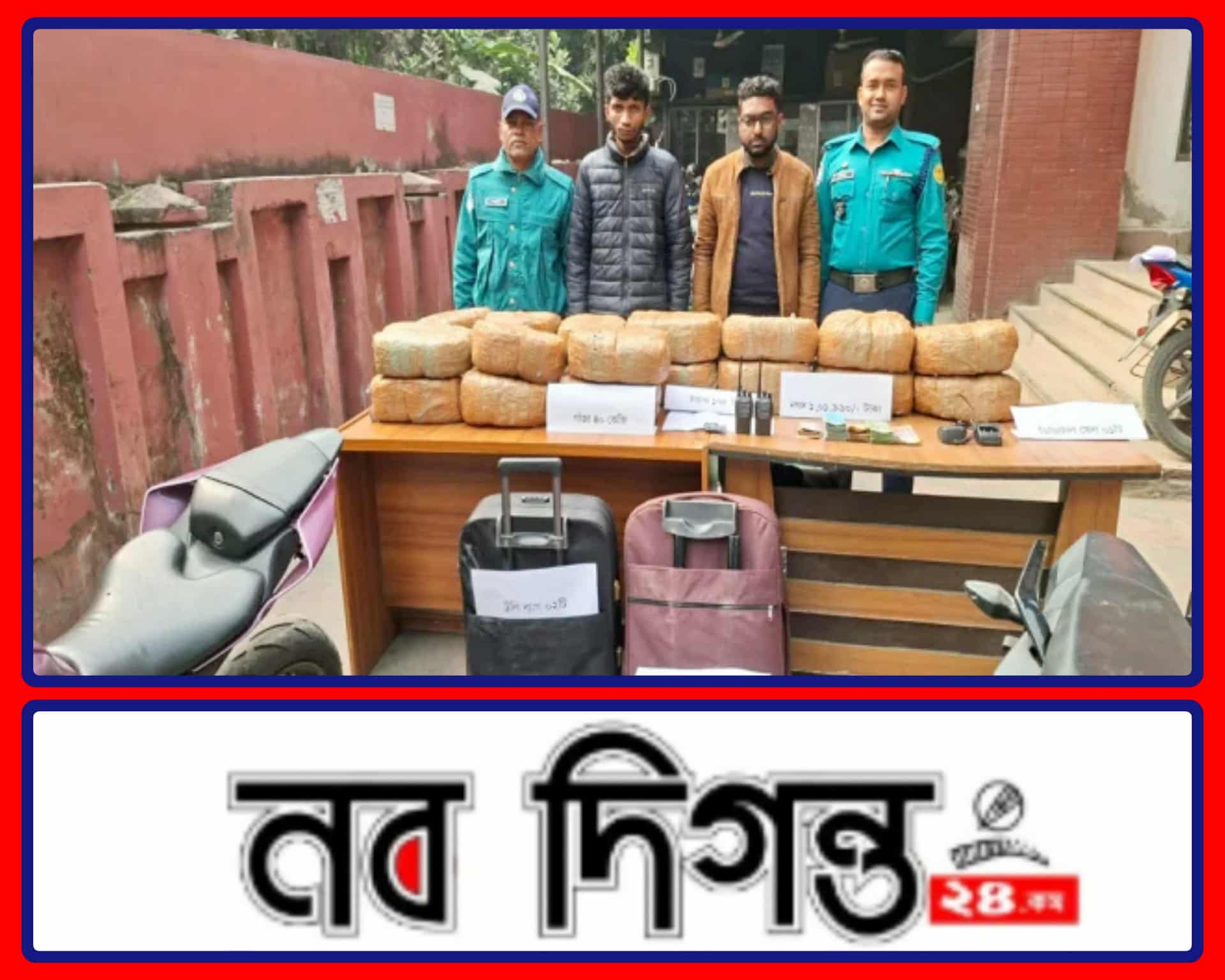 রাজধানীর খিলক্ষেত থানা পুলিশের অভিযানে ৪০ কেজি গাঁজা,ইয়াবা,এক লক্ষ টাকাও মোটরসাইকেলসহ ২ মাদক কারবারী আটক