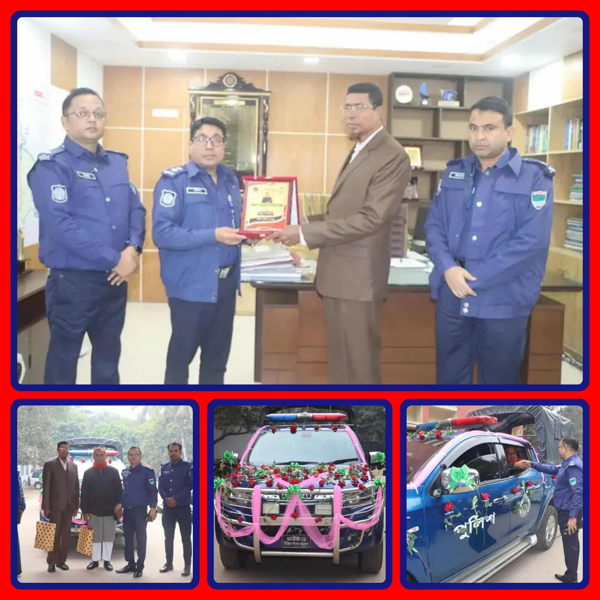 মনা নিজস্ব প্রতিনিধিঃ মাগুরা জেলার পুলিশ সুপার জনাব হাবিবুর রহমান মহোদয়ের উদ্যোগে সহকর্মী পুলিশ সদস্যদের কাছ থেকে পেলেন এক ব্যতিক্রমী সংবর্ধনা। শুধু তা-ই নয়, গাড়িটি ফুল-বেলুন দিয়ে সাজানোও হয়। এভাবে