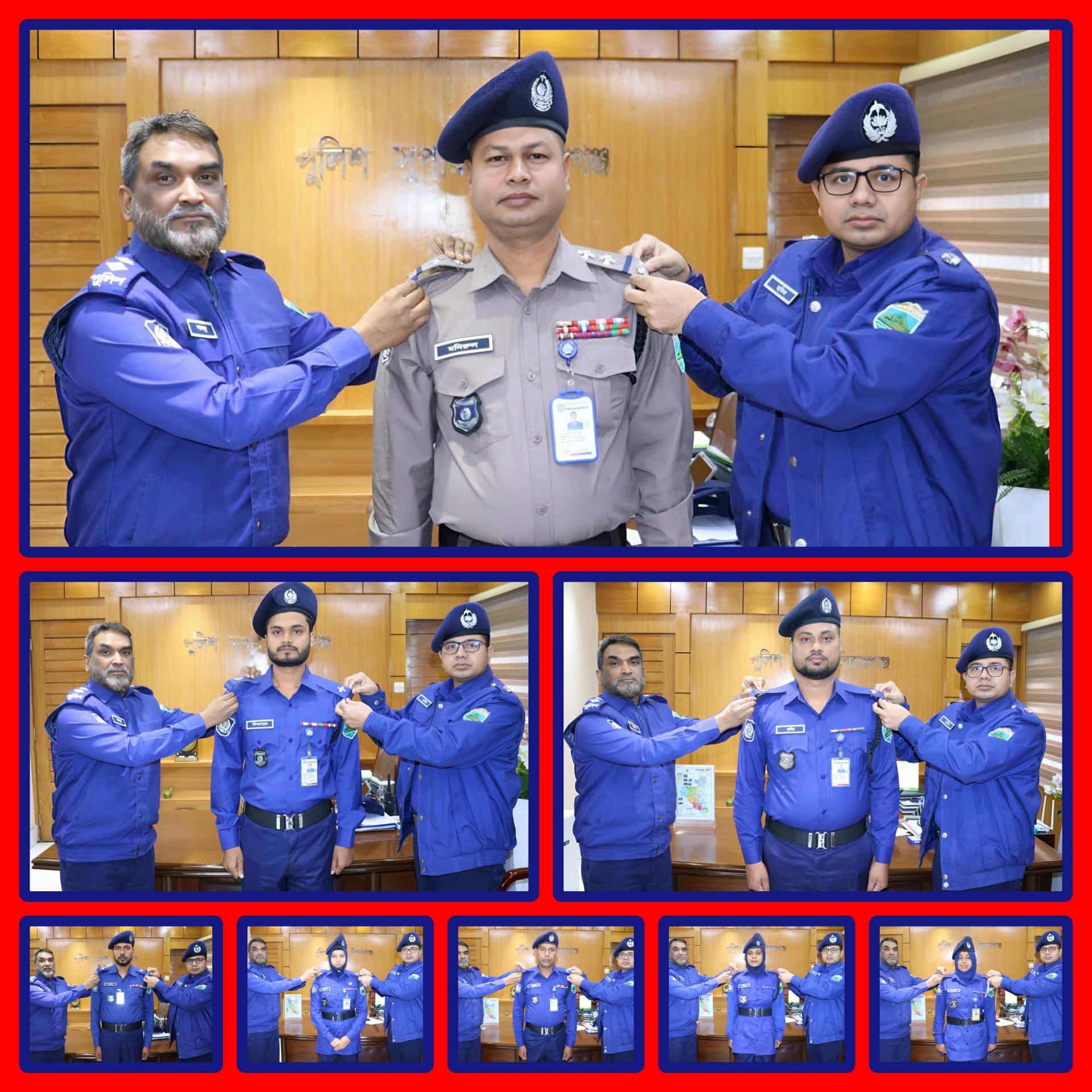 সিরাজগঞ্জ জেলা পুলিশের সদ্য পদোন্নতিপ্রাপ্ত পুলিশ সদস্যকে র‍্যাংক ব্যাজ পরিয়ে দিলেন পুলিশ সুপার, সিরাজগঞ্জ