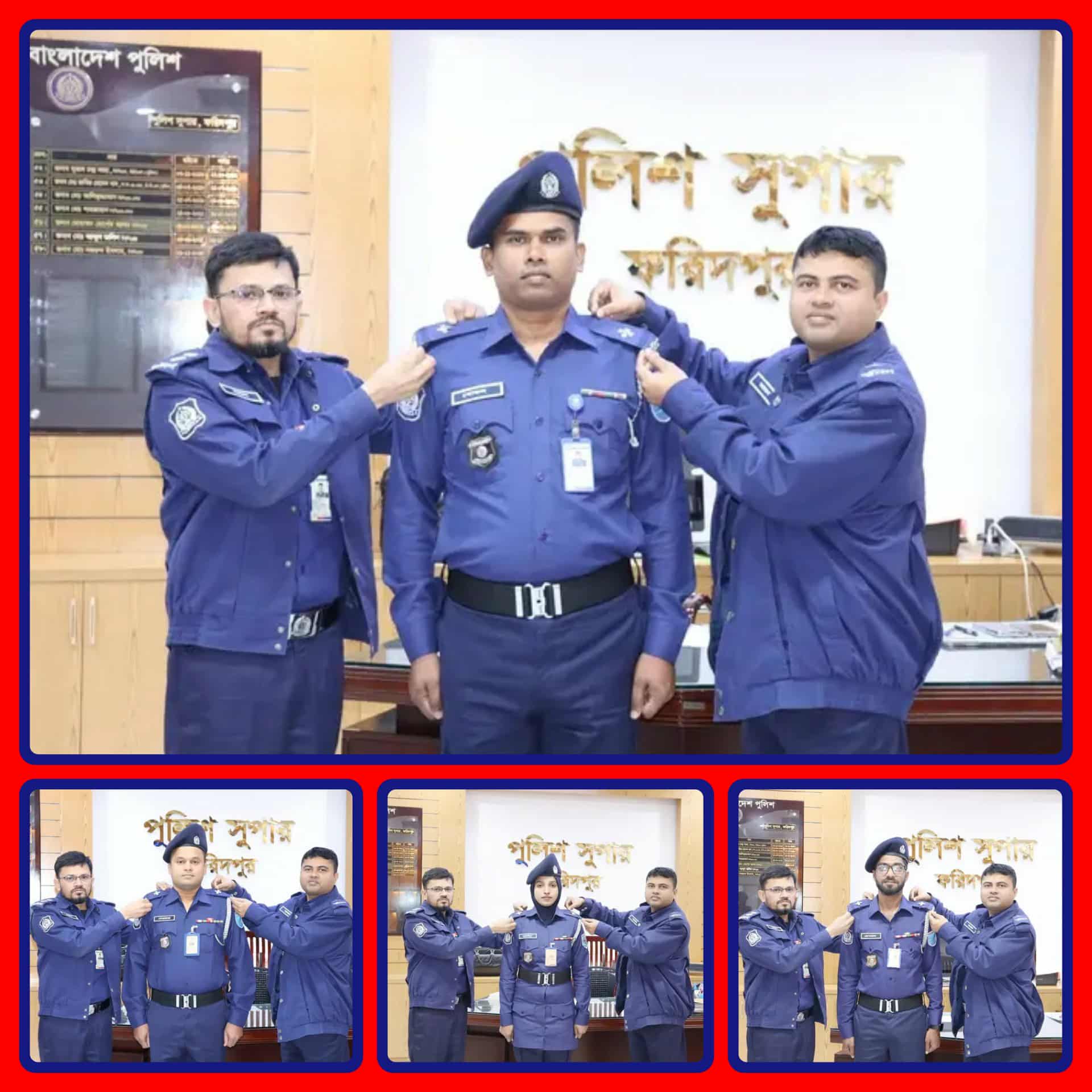 এএসআই(নিঃ) পদে পদোন্নতি প্রাপ্ত ০৪ জন পুলিশ অফিসারকে র‌্যাংক ব্যাজ পরিয়ে দিলেন পুলিশ সুপার, ফরিদপুর