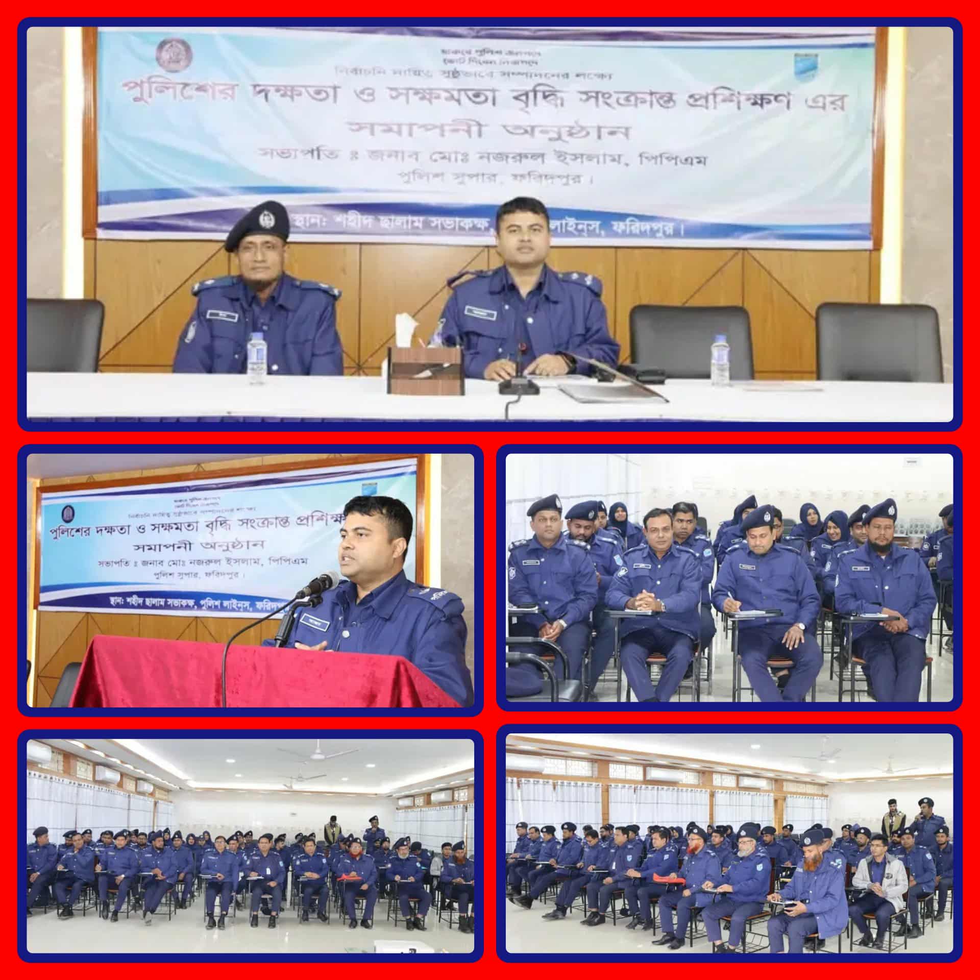 ফরিদপুরে নির্বাচনি দায়িত্ব সুষ্ঠুভাবে সম্পাদনের লক্ষ্যে পুলিশের দক্ষতা ও সক্ষমতা বৃদ্ধির জন্য ৪র্থ পর্যায়ের ২২ তম ব্যাচের ০৩ দিন মেয়াদী প্রশিক্ষণ কোর্সের সমাপনী অনুষ্ঠান অনুষ্ঠিত