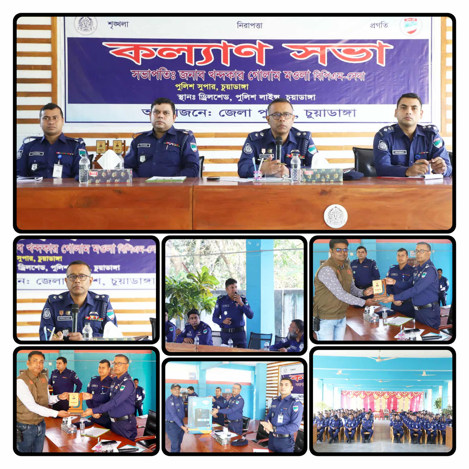 মনা নিজস্ব প্রতিনিধিঃ চুয়াডাঙ্গা পুলিশ লাইন্স ড্রিলশেডে জনাব খন্দকার গোলাম মওলা, বিপিএম-সেবা, পুলিশ সুপার, চুয়াডাঙ্গা’র সভাপতিত্বে আজ ২০ নভেম্বর ২০২৫ খ্রিঃ তারিখ সকাল ১১:০০ ঘটিকায় নভেম্বর/২০২৫ মাসের মাসিক কল্যাণ সভা