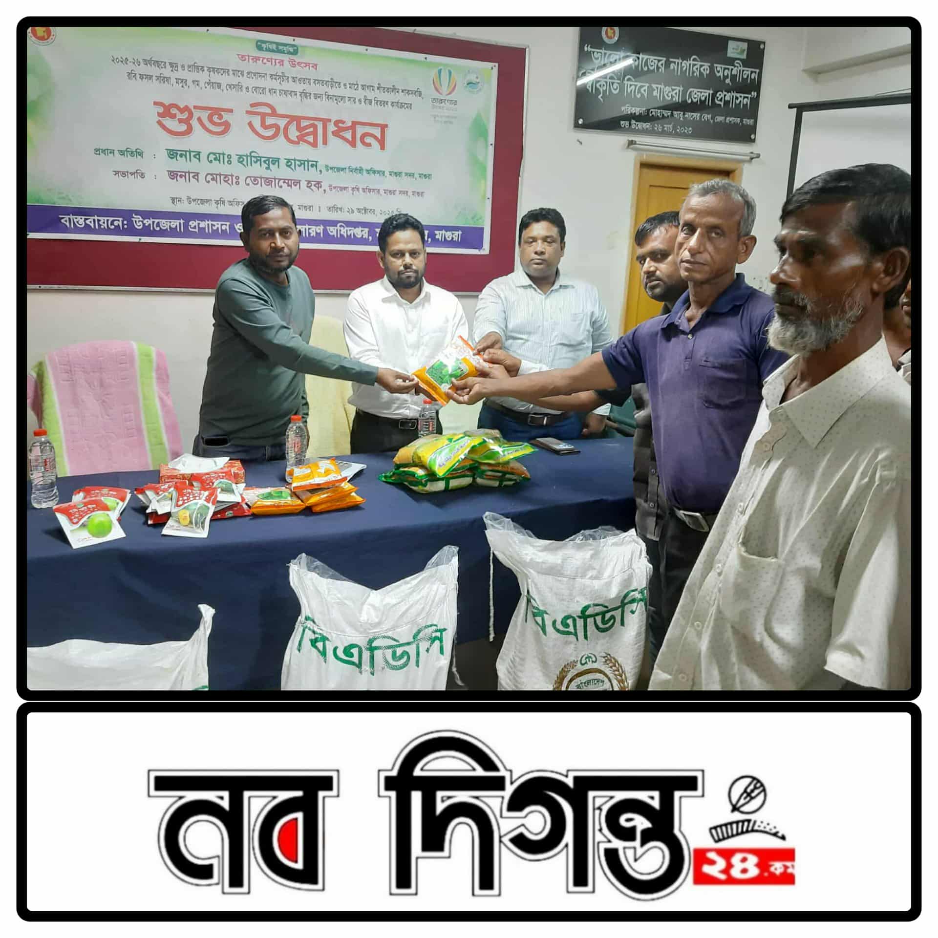 মাগুরা সদর উপজেলা কৃষি সম্প্রসারণ অধিদপ্তর মিলনায়তনে ৬৫০ জন প্রান্তিক কৃষকদের মাঝে বিনামূল্যে সার ও বীজ বিতরণ