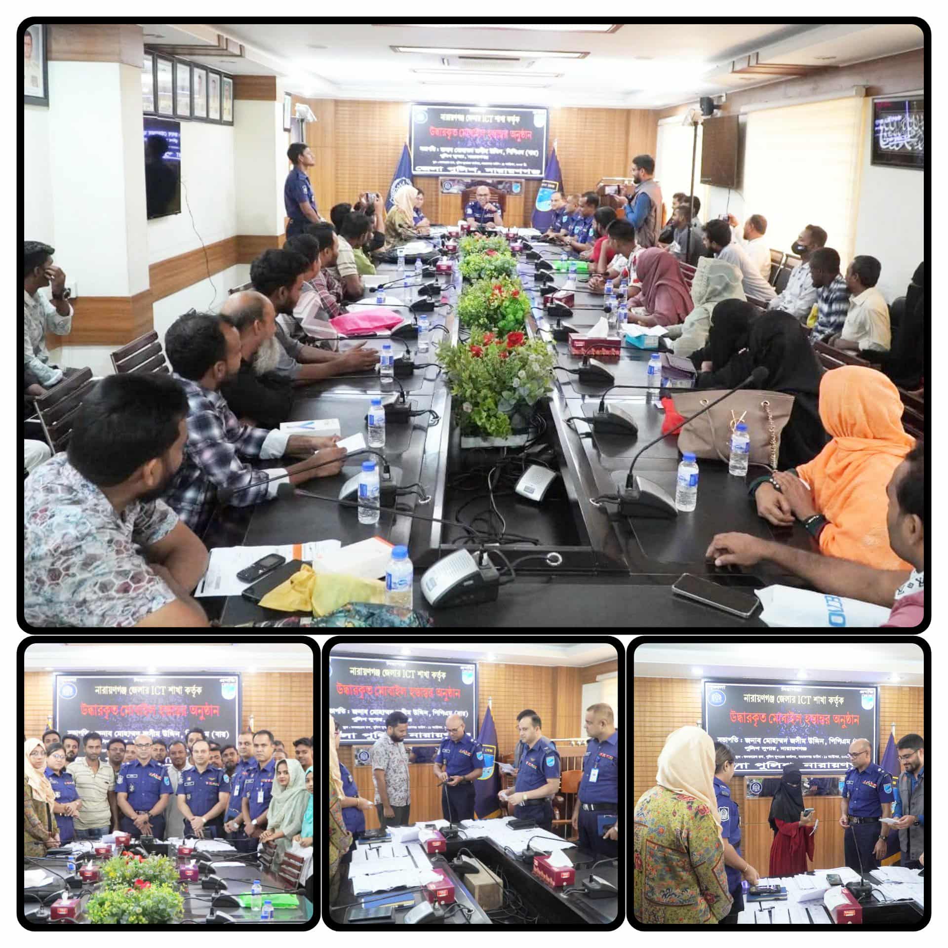 মনা নিজস্ব প্রতিনিধিঃ নারায়ণগঞ্জ জেলার সুযোগ্য পুলিশ সুপার জনাব মোহাম্মদ জসীম উদ্দিন, পিপিএম (বার) মহোদয়ের নির্দেশক্রমে নারায়ণগঞ্জ জেলা পুলিশের আইসিটি শাখার একটি চৌকস টিম মোবাইল হারানোর জিডি তদন্ত করে সর্বমোট