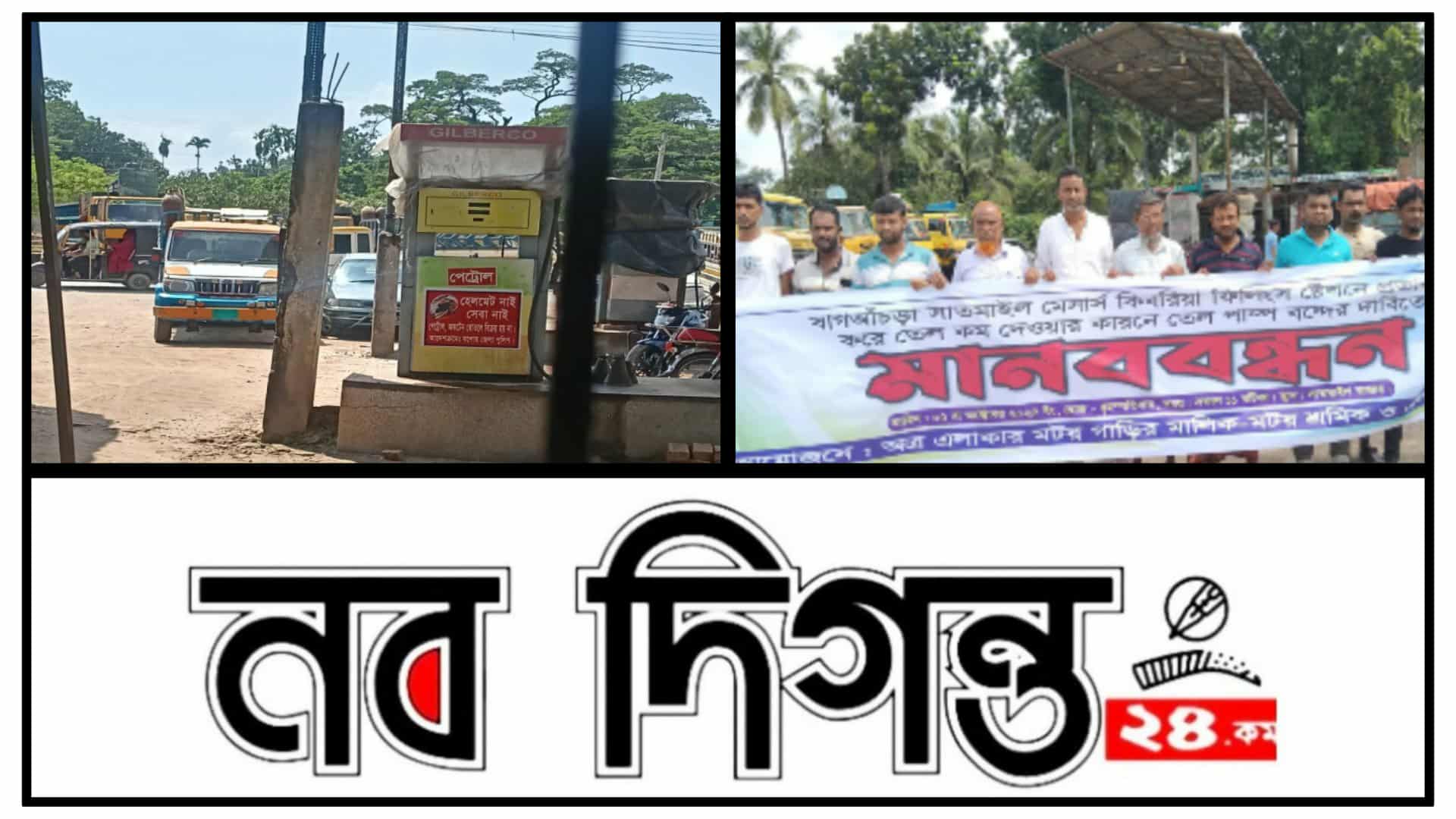যশোর শার্শা বাগ আচঁড়ায় মেসার্স কিবরিয়া পাম্পে তেল কম দেওয়ার অভিযোগ- বন্ধের দাবীতে মানববন্ধন