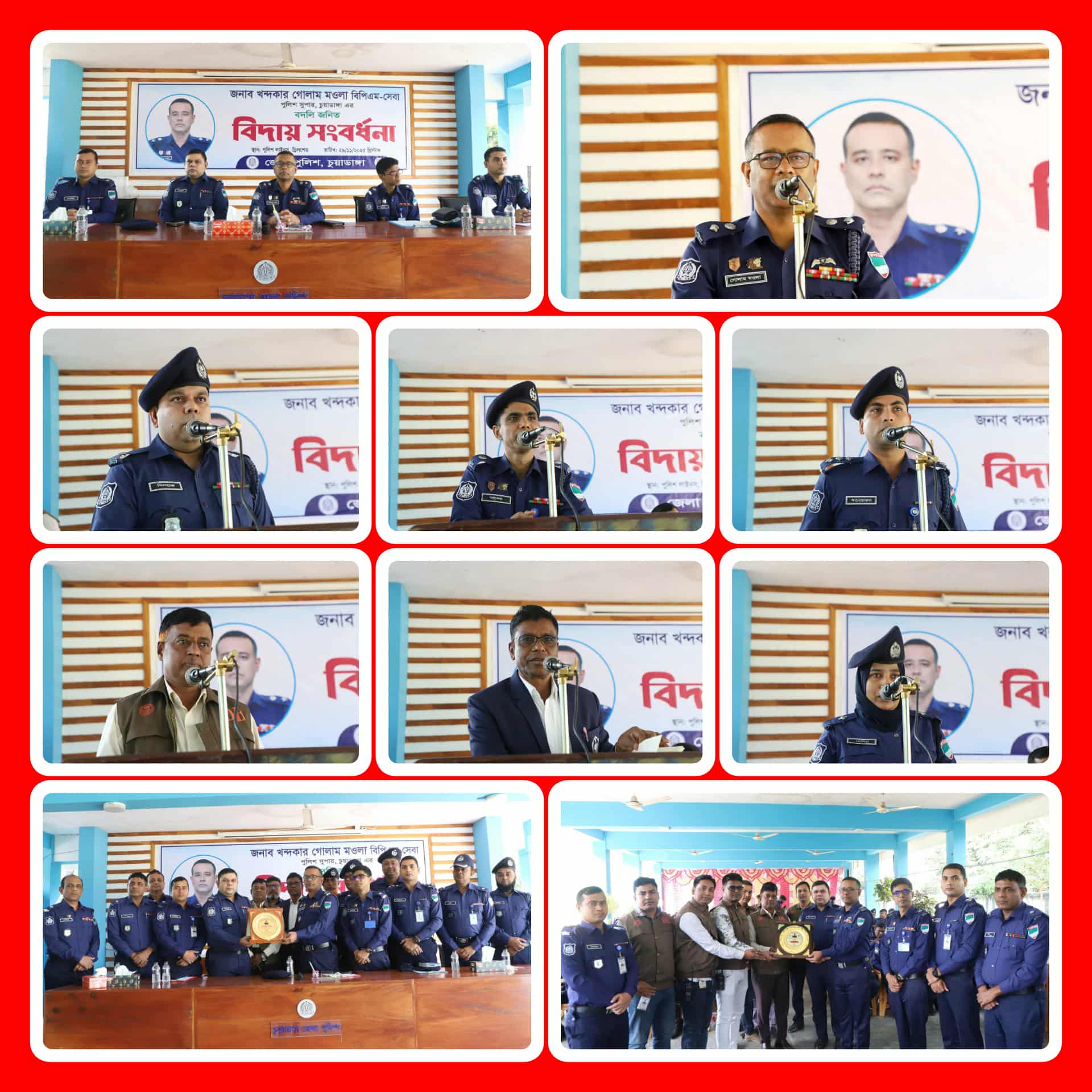 মাগুরায় পুলিশ সুপার মহোদয়ের বদলি উপলক্ষে বিশেষ কল্যাণ সভা অনুষ্ঠিত নারায়ণগঞ্জ জেলায় পুলিশ সুপার জনাব মোহাম্মদ মিজানুর রহমান মুন্সী মহোদয়ের যোগদান পুলিশ সুপার, বগুড়া হিসেবে আমার শেষ কর্মদিবস আমার পরবর্তী কর্মস্থল পুলিশ সুপার, দিনাজপুর জেলা পিবিআই এর ০৬ জনের জেলার এসপি হিসেবে বদলি এবং ০১ জনের ডিআইজি পদে পদোন্নতির সংবর্ধনা জাতীয় প্রতিবন্ধী দিবস উপলক্ষ্যে বগুড়ায় প্রতিবন্ধী নারীদের সম্মেলন পীরগঞ্জে মিনি বাস–মোটরসাইকেল সংঘর্ষে স্কুলছাত্র আহত যশোর বেনাপোল মডার্ণ ডায়াগনস্টিক সেন্টারের ১০ বছর পূর্তি উদযাপন বেগম খালেদা জিয়ার সুস্থতা কামনায় বিশেষ দোয়া চুয়াডাঙ্গা জেলার পুলিশ সুপার জনাব খন্দকার গোলাম মওলা, বিপিএম-সেবা এঁর বদলীজনিত বিদায় সংবর্ধনা অনুষ্ঠিত মহানগর গোয়েন্দা বিভাগ (পশ্চিম) বিভাগ কর্তৃক অভিযান পরিচালনা করে ২৬০০ পিস ইয়াবা এবং ১টি ট্রাকসহ ১ জন আসামী গ্রেফতার