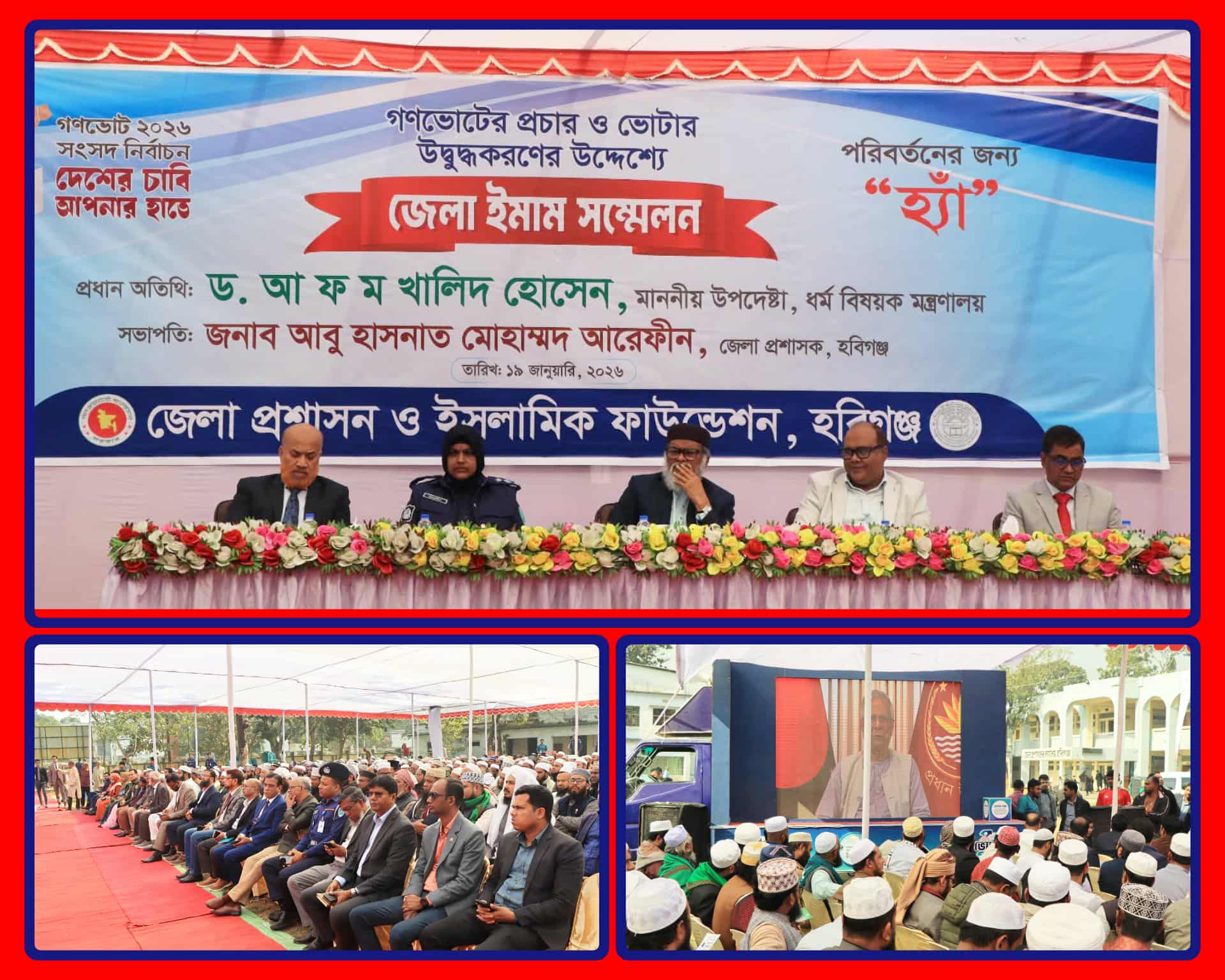 গণভোটের প্রচার ও ভোটের উদ্বুদ্ধকরণের উদ্দ্যেশ্যে হবিগঞ্জ জেলায় ‘জেলা ইমাম সম্মেলন’ অনুষ্ঠান অনুষ্ঠিত