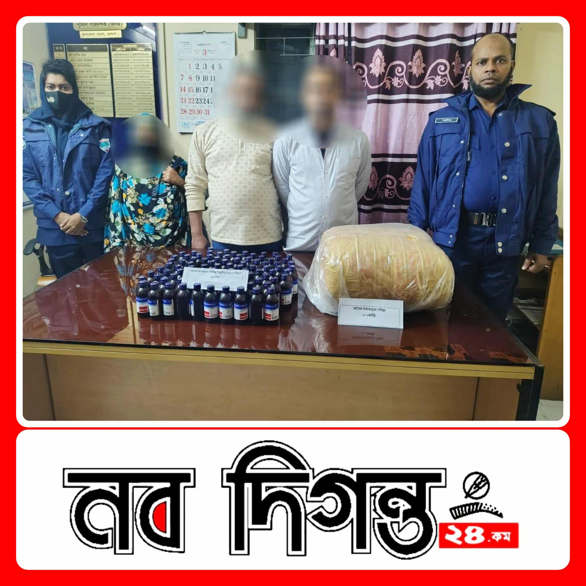 খুলনা জেলার ফুলতলা থানা পুলিশ ৯২ বোতল নিষিদ্ধ লিকুইড ESKUF সিরাপ ও ১০ কেজি গাঁজাসহ আটক-৩