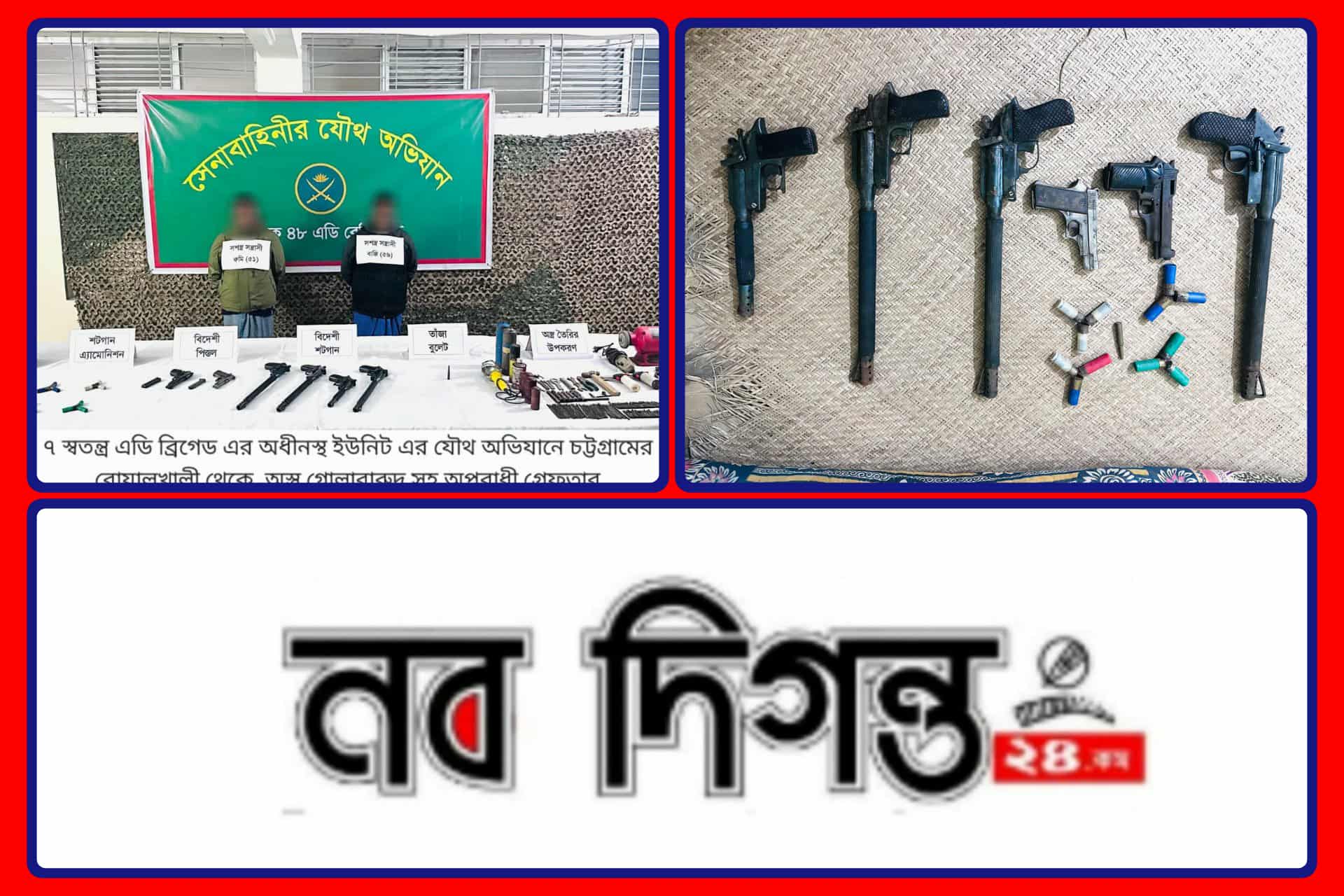 চট্টগ্রামের বোয়ালখালী সেনাবাহিনীর নেতৃত্বে একটি যৌথ অভিযানে ৬ টি অস্ত্রসহ গোলাবারুদ উদ্ধার: গ্রেফতার-২