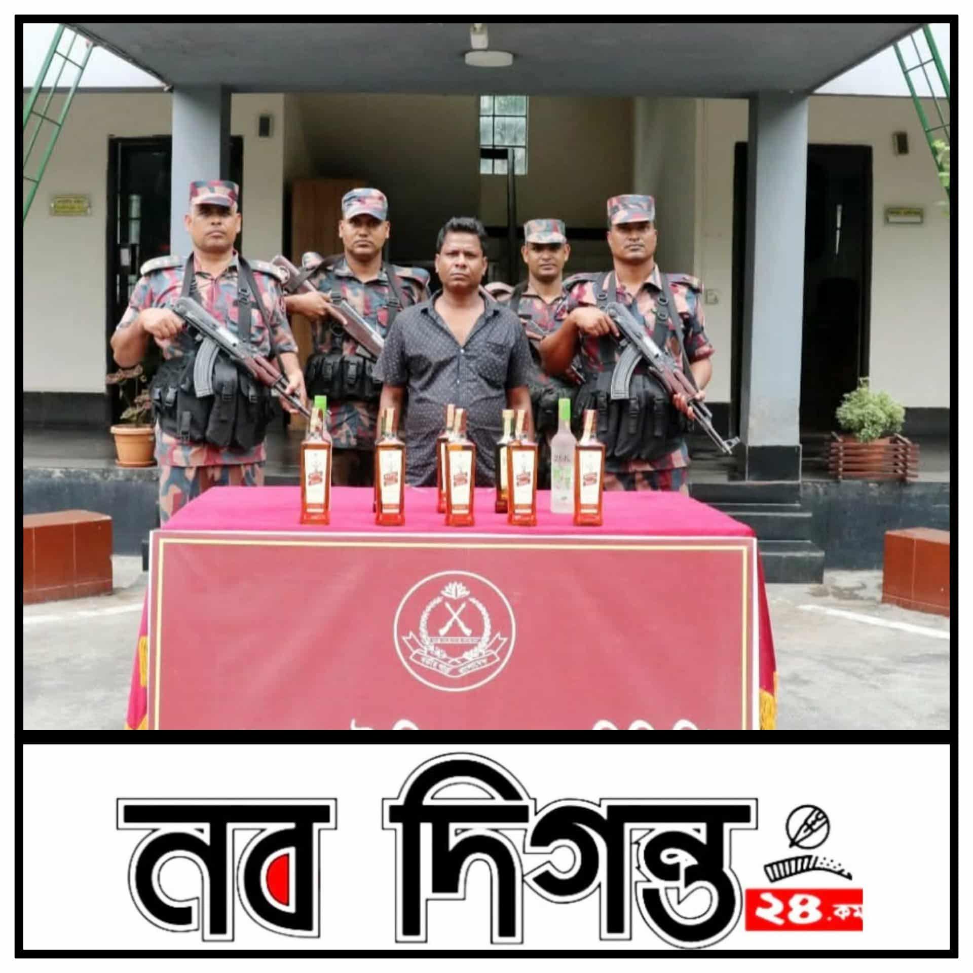 যশোর-নড়াইল মহাসড়কে বাউলিয়া বাজার এলাকায় পাকা রাস্তার উপর হতে ১০ বোতল বিদেশী মদসহ ১ জন ভারতীয় নাগরিক আটক করেছে বিজিবি