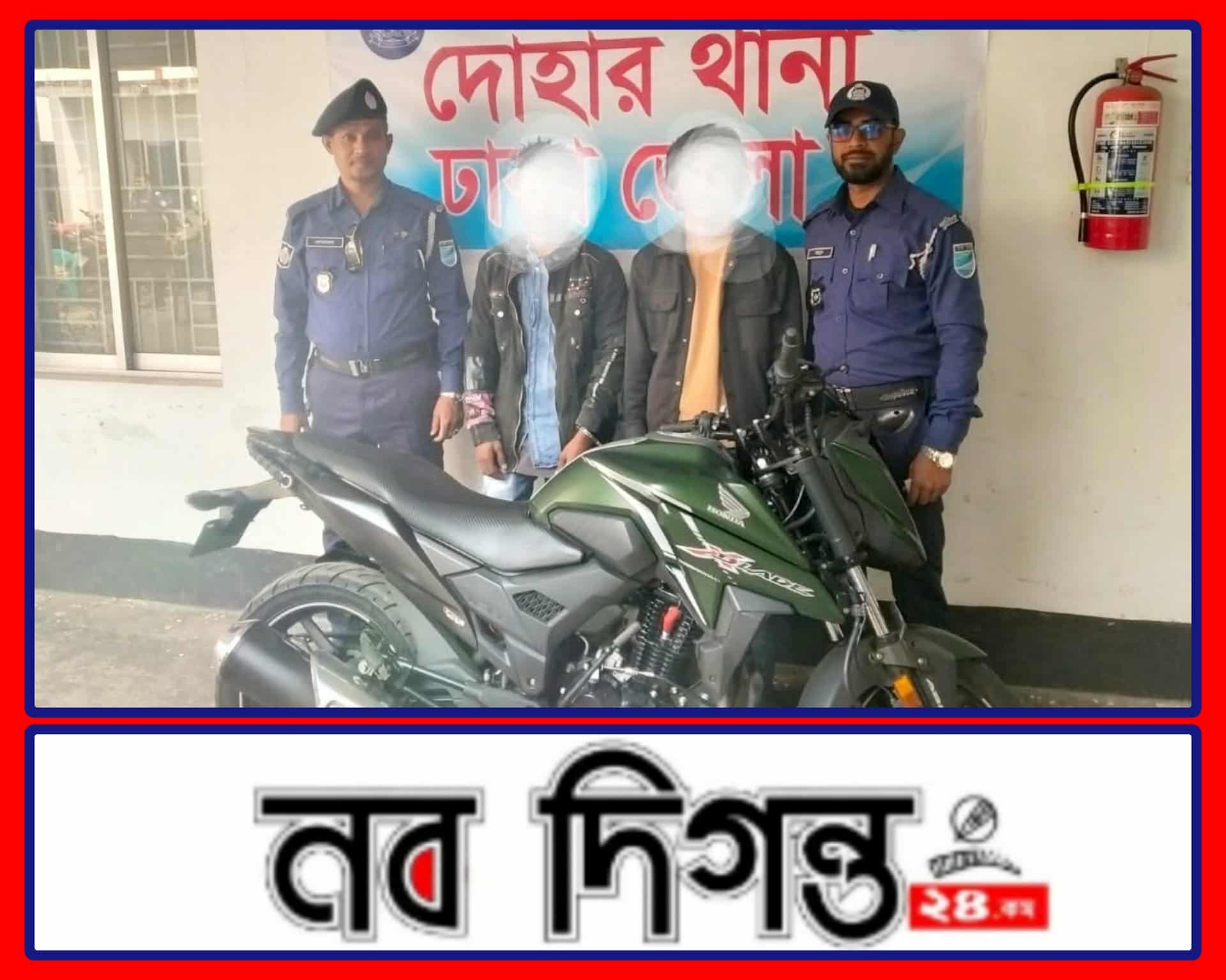 ঢাকা জেলাযদোহার থানাধীন দোহার পৌরসভাস্থ রেবেকা টাওয়ারের সামনে বিশেষ অভিযানে চোরাইকৃত ১ টি মোটর সাইকেল সহ পেশাদার চোরাইচক্রের ২ সদস্য আটক