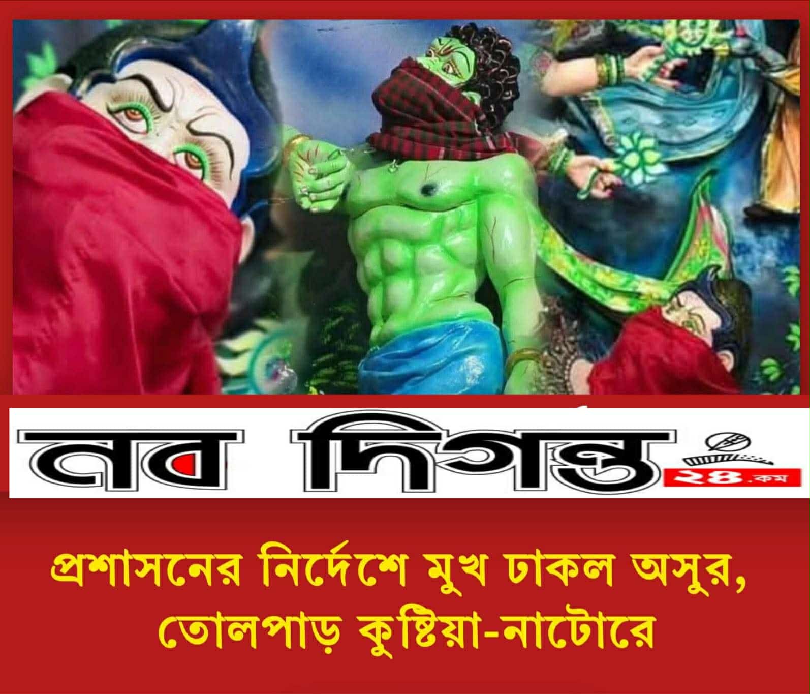 নিজস্ব প্রতিবেদক, কুষ্টিয়া: শারদীয় দুর্গাপূজার ঠিক আগ মুহূর্তে কুষ্টিয়া ও নাটোর জেলার বিভিন্ন পূজা মণ্ডপে প্রতিমার অসুরের মুখ কাপড় ও গামছা দিয়ে ঢেকে দেওয়ার এক নজিরবিহীন ঘটনা ঘটেছে। প্রতিমায় অসুরের