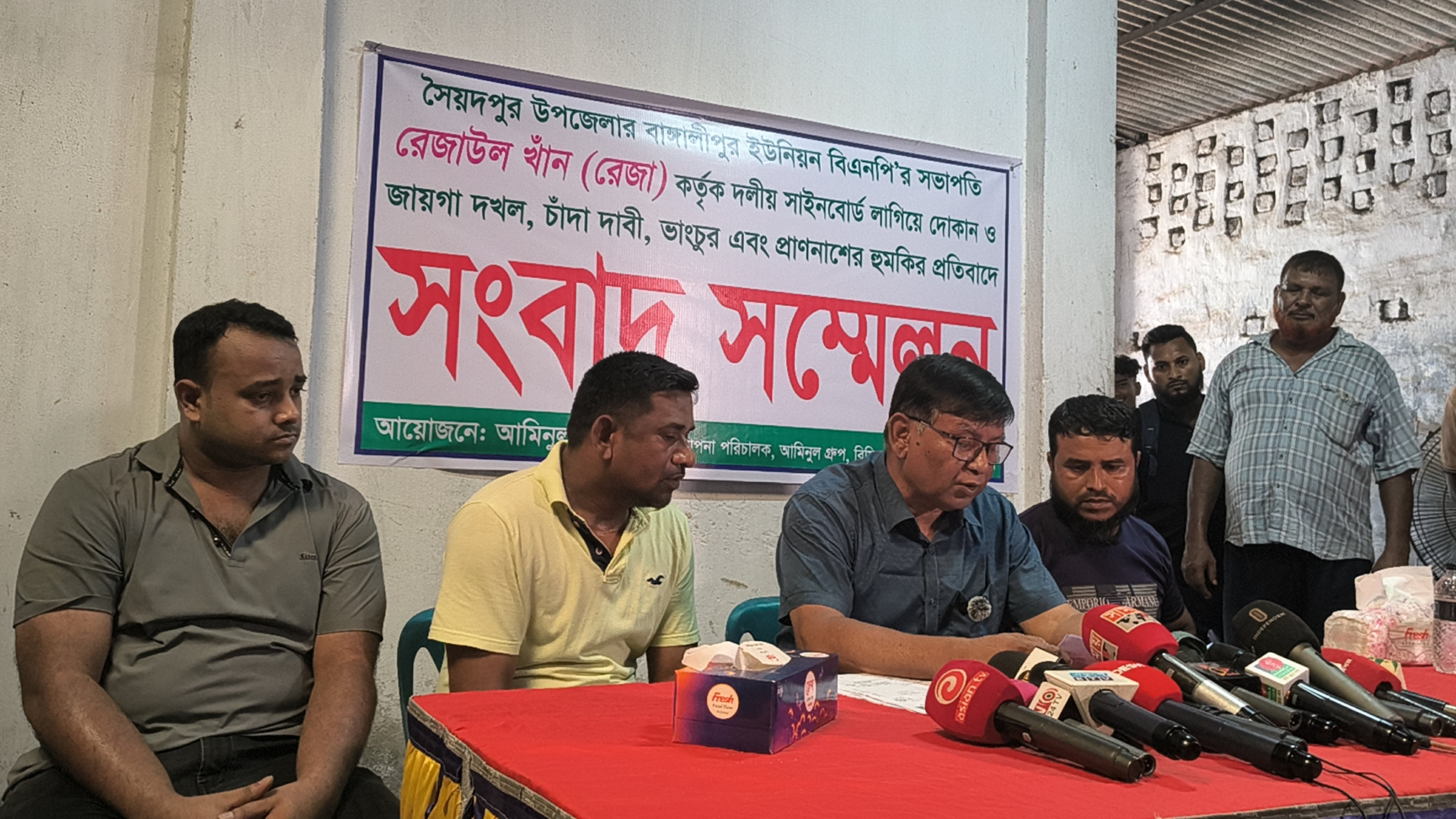 নীলফামারীর সৈয়দপুরে বিএনপির সাইনবোর্ড লাগিয়ে ব্যবসায়ীর মার্কেট দখল, ভাঙচুর, চাঁদাবাজি ও প্রাণনাশের হুমকির প্রতিবাদে সংবাদ সম্মেলন হয়েছে। মঙ্গলবার (৩০ সেপ্টেম্বর) দুপুরে ভুক্তভোগী ব্যবসায়ী নীলফামারী চেম্বার অব কমার্স অ্যান্ড ইন্ডাস্ট্রিজের ডিরেক্টর