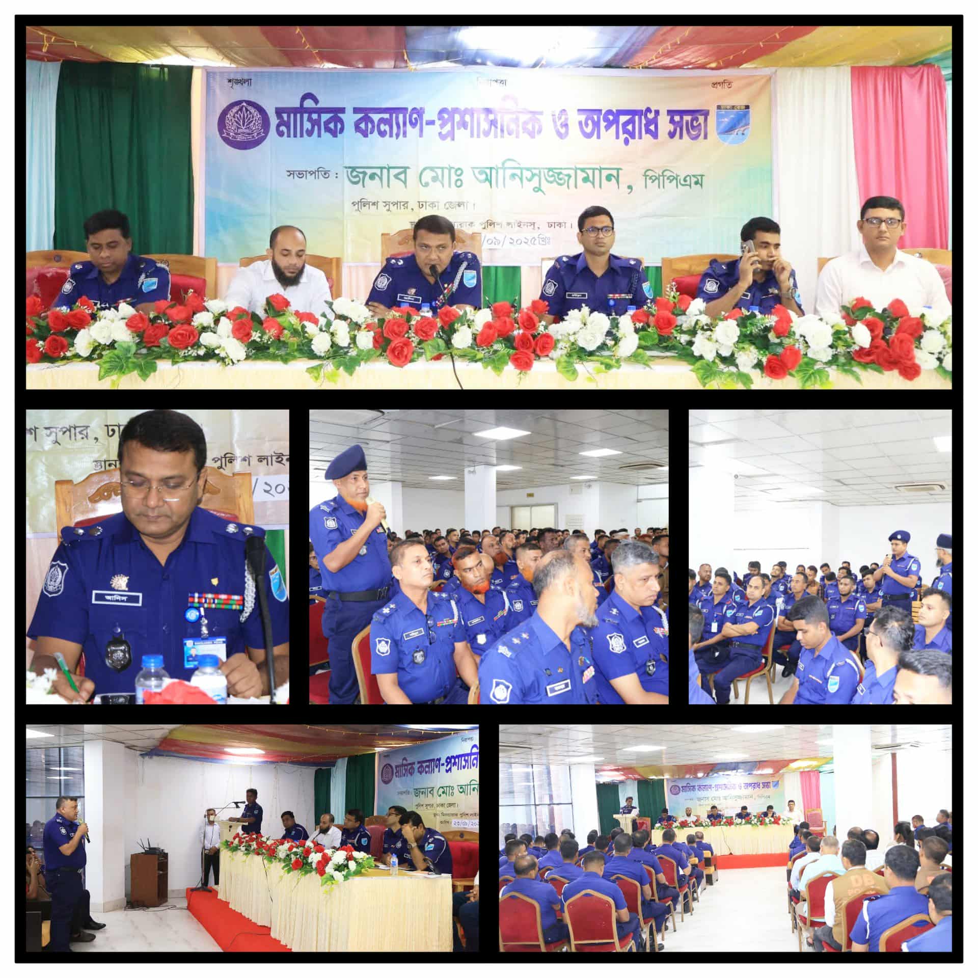 ঢাকা জেলা পুলিশের মাসিক কল্যাণ সভা এবং মাসিক প্রশাসনিক ও অপরাধ সভা অনুষ্ঠিত
